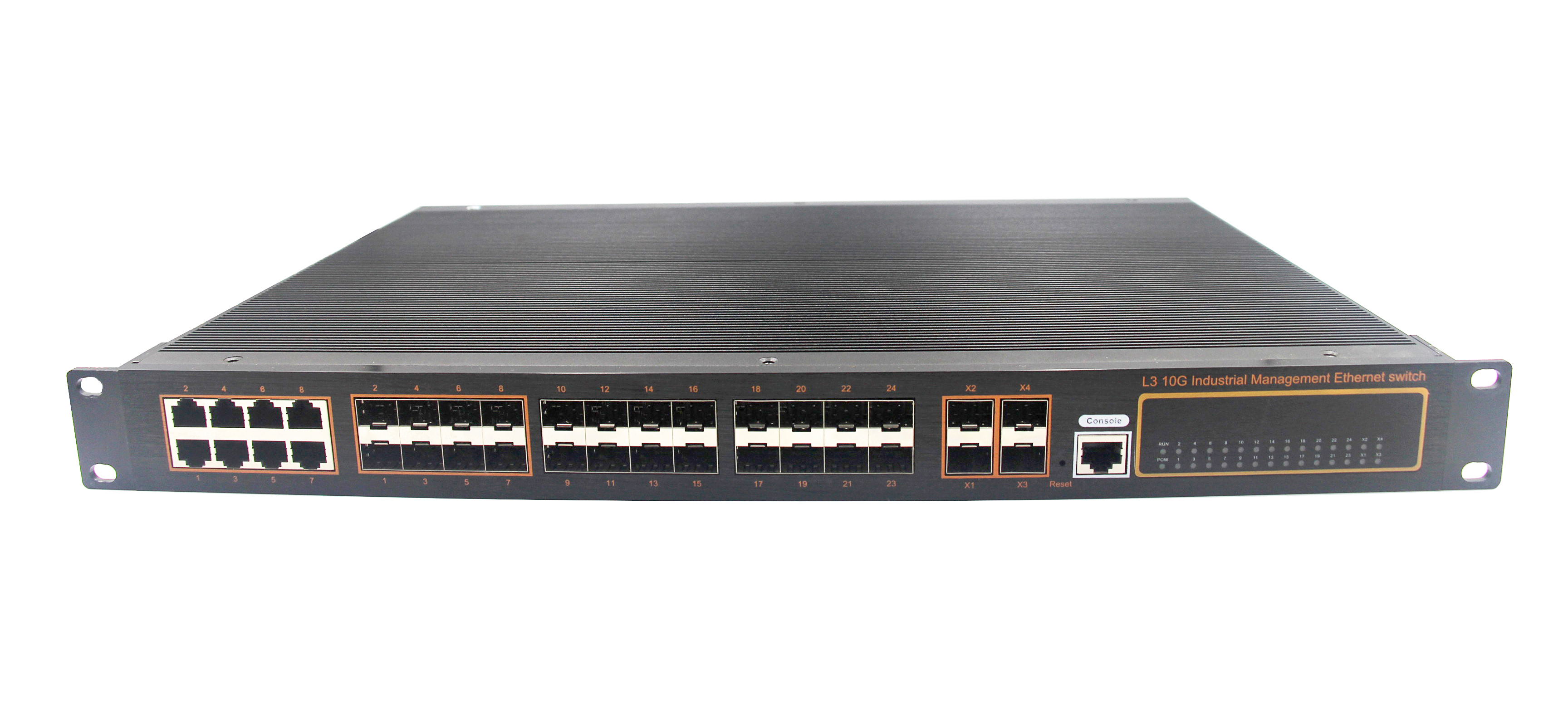 24千兆光口8千兆復(fù)用電口4個(gè)萬兆SFP萬兆網(wǎng)管型機(jī)架式工業(yè)匯聚交換機(jī) |