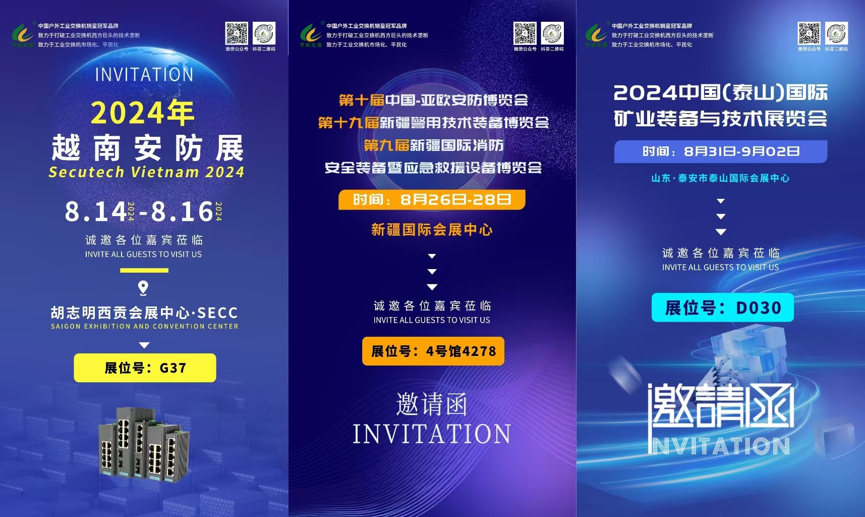 8月中下旬,宇航還會在越南(8月14日-16日)、新疆(8月26日-28日)、山東(8月31日-9月2日)等地參加展會,在河南鄭州(8月15日)、湖北武漢(8月16日)舉辦2024宇航工業(yè)交換機千城行產(chǎn)品技術(shù)交流大會。屆時,歡迎各位領(lǐng)導嘉賓蒞臨現(xiàn)場,參觀指導!