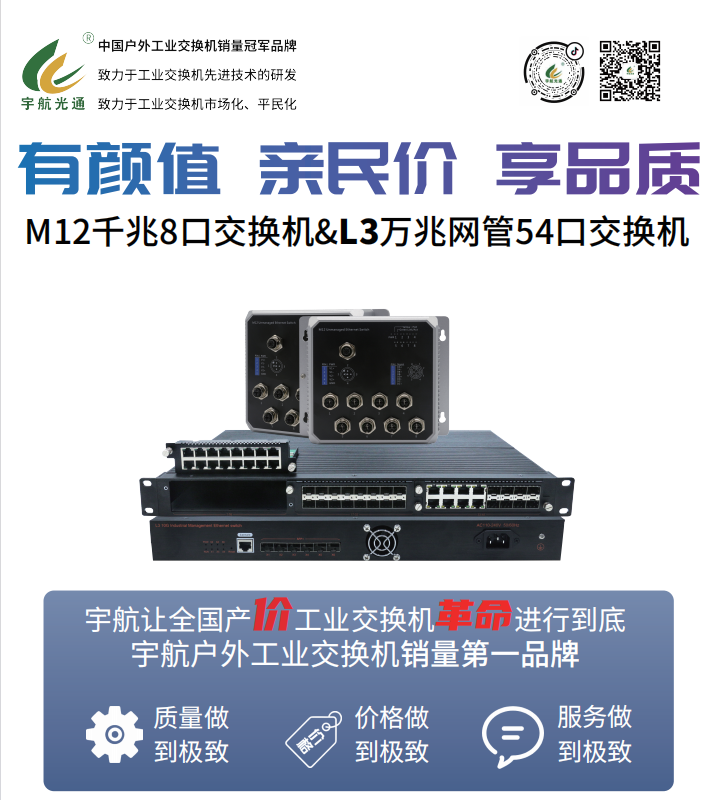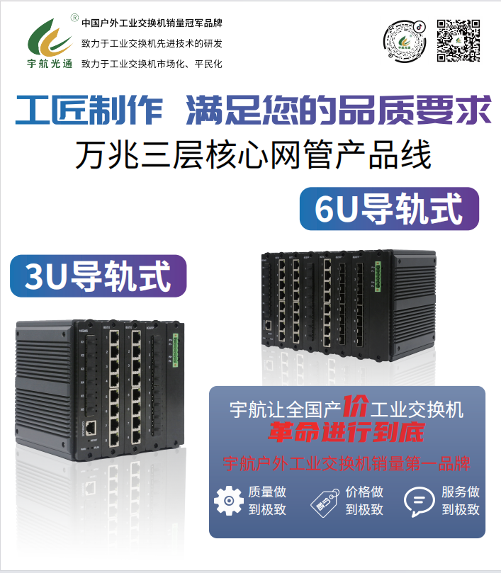 宇航全國產工業交換機系列已實現整體升級,邁上全新臺階,本次重點展示的全國產萬兆核心與二層交換機,徹底證明了國產方案已能無縫替代美系、臺系產品,且不懼性能比較,全國產工業交換機已告別“可用”,進入“好用””的全新階段。我們提供多樣化的規格選擇,以滿足您不同場景的嚴苛需求。