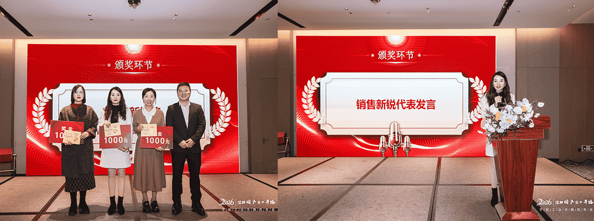 長江后浪推前浪,宇航新銳展鋒芒!榮獲2025年度銷售新銳獎的是:胡海燕、王艷、張雙女!她們在銷售戰場敢闖敢拼,以快速成長的業務能力開拓市場,用亮眼業績為國產工業交換機搶占份額、注入新生力量,成為團隊中的耀眼新星!聯席總經理劉偉成先生為她們頒獎,劉總表示:"銷售新銳用實力證明了自己的擔當,期待他們在銷售戰場上續寫更多輝煌!"