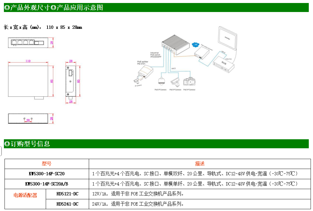 首頁產品系列百兆1光4電寬溫KW5300-14F-SC20