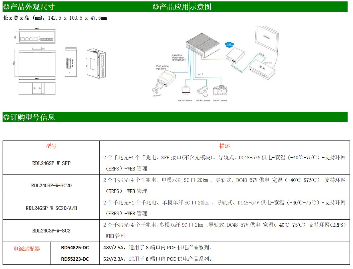 RDL24GSP-W-SFP系列WEB管理工業級以太網PoE交換機,產品符合FCC、CE、ROHS標準,支持工業現場所需的以太網二層協議,保證通信網絡的穩定性。該系列交換機采用低功耗、無風扇設計,確保無噪聲干擾,同時支持-40~75℃工作溫度和良好的EMC電磁兼容性能,保證在惡劣的工業環境中保持穩定的工作,為工廠自動化,智能交通,視頻監控等工業應用領域組建快速穩定的網絡終端接入網絡提供安全可靠的解決方案。