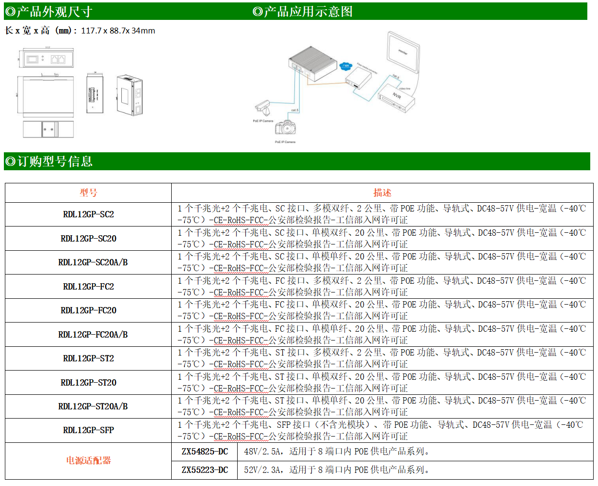 2路千兆POE電口+1路千兆FX光口工業級以太網POE交換機,支持2個10/100/1000Base-TX電口和1個1000Base-X光口。產品符合FCC、CE、ROHS標準。RDL12GP系列交換機具有-40℃~75℃的工作溫度,具有超強的堅固度能適應各種嚴苛環境,也可以非常方便的安置在空間緊湊的控制箱中。導軌的安裝特性、寬溫操作及擁有IP40防護等級的外殼及LED指示燈,使RDL12GP成為一個即插即用的工業級設備,為用戶的以太網設備聯網提供可靠、便捷的解決方案。