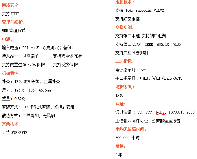 RD28GFS-SFP是網管型工業以太網交換機,產品符合FCC、CE、ROHS標準。支持2個千兆光口和8個百兆電口,支持一路console口;支持工業現場所需的以太網二層協議,保證通信網絡的穩定性;該系列交換機采用低功耗、無風扇設計,確保無噪聲干擾,同時支持-40~85℃工作溫度和良好的EMC電磁兼容性能,保證在惡劣的工業環境中保持穩定的工作,為工廠自動化,智能交通,視頻監控等工業應用領域組建快速穩定的網絡終端接入網絡提供安全可靠的解決方案。