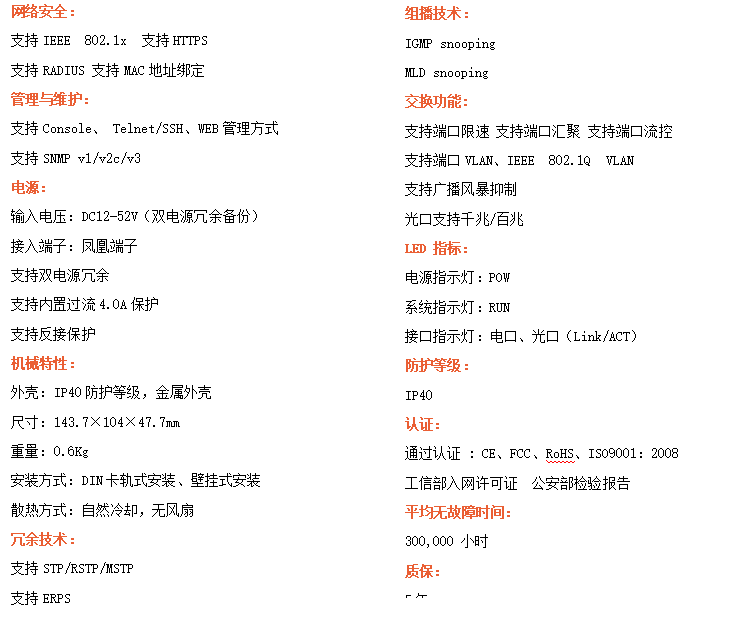 ●支持STP/RSTP/ERPS,SNMPv1/v2/v3,確保網(wǎng)絡(luò)安全