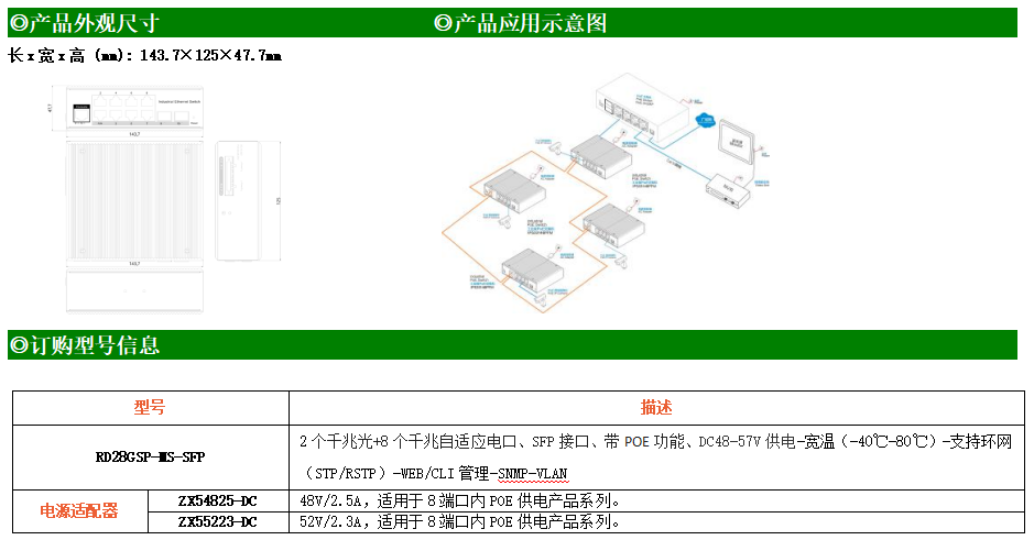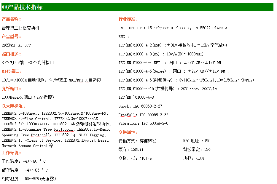 RD28GSP-MS是網(wǎng)管型工業(yè)以太網(wǎng)POE交換機(jī),產(chǎn)品符合FCC、CE、RoHS標(biāo)準(zhǔn)。支持2個(gè)千兆光口和8個(gè)千兆電口;支持工業(yè)現(xiàn)場(chǎng)所需的以太網(wǎng)二層協(xié)議,保證通信網(wǎng)絡(luò)的穩(wěn)定性;該系列交換機(jī)采用低功耗、無風(fēng)扇設(shè)計(jì),確保無噪聲干擾,同時(shí)支持-40~80℃工作溫度和良好的EMC電磁兼容性能,保證在惡劣的工業(yè)環(huán)境中保持穩(wěn)定的工作,為工廠自動(dòng)化,智能交通,視頻監(jiān)控等工業(yè)應(yīng)用領(lǐng)域組建快速穩(wěn)定的網(wǎng)絡(luò)終端接入網(wǎng)絡(luò)提供安全可靠的解決方案。