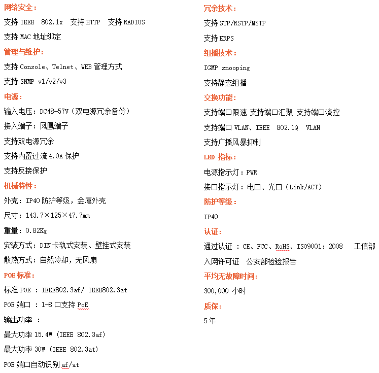 ●安全管理:支持ACL訪問控制列表,支持802.1X