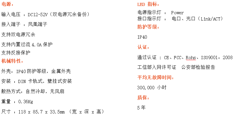 4路百兆電口+1路百兆FX光口工業級以太網交換機,支持4個10Base-T/100Base-TX電口和1個100Base-X光口。產品符合FCC、CE、ROHS標準。RD14F系列交換機具有-40℃~80℃的工作溫度,具有超強的堅固度能適應各種嚴苛環境,也可以非常方便的安置在空間緊湊的控制箱中。導軌的安裝特性、寬溫操作及擁有IP40防護等級的外殼及LED指示燈,使RD14F成為一個即插即用的工業級設備,為用戶的以太網設備聯網提供可靠、便捷的解決方案。