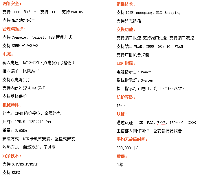 ●支持STP/RSTP/ERPS,SNMPv1/v2/v3,確保網絡安全
