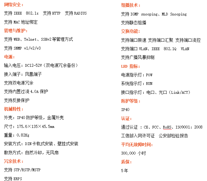 ●支持STP/RSTP/ERPS,SNMPv1/v2/v3,確保網絡安全